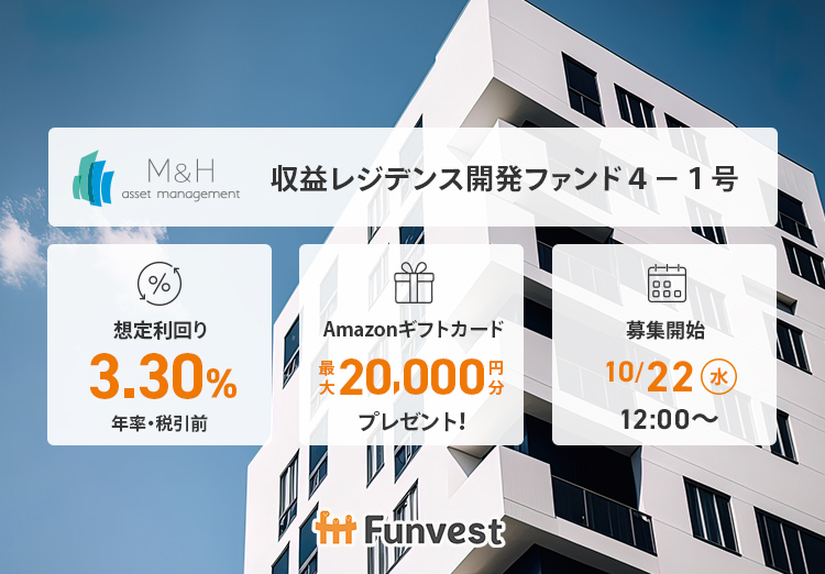 Fintertech株式会社(以下「営業者」といいます)は、株式会社M&Hアセットマネジメントに対し、円建で不動産事業資金として貸付けを行い、同社は事業により得られた収益から、元利金の支払いを行います。