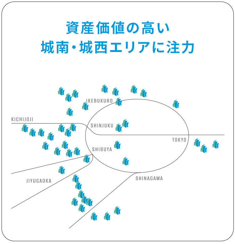 過去、リーマンショックのような不動産市況の悪化の際も、居住用物件の賃料はオフィスや商業物件の賃料と比較して変動幅が少なかった経緯があり、市況変動に比較的強い資産といえます。また、城南・城西エリアはその他の地域と比較して、用途地域等の規制から物件が供給過多になりにくいエリアであり、同社はこれらの点に着目して開発を行っています。