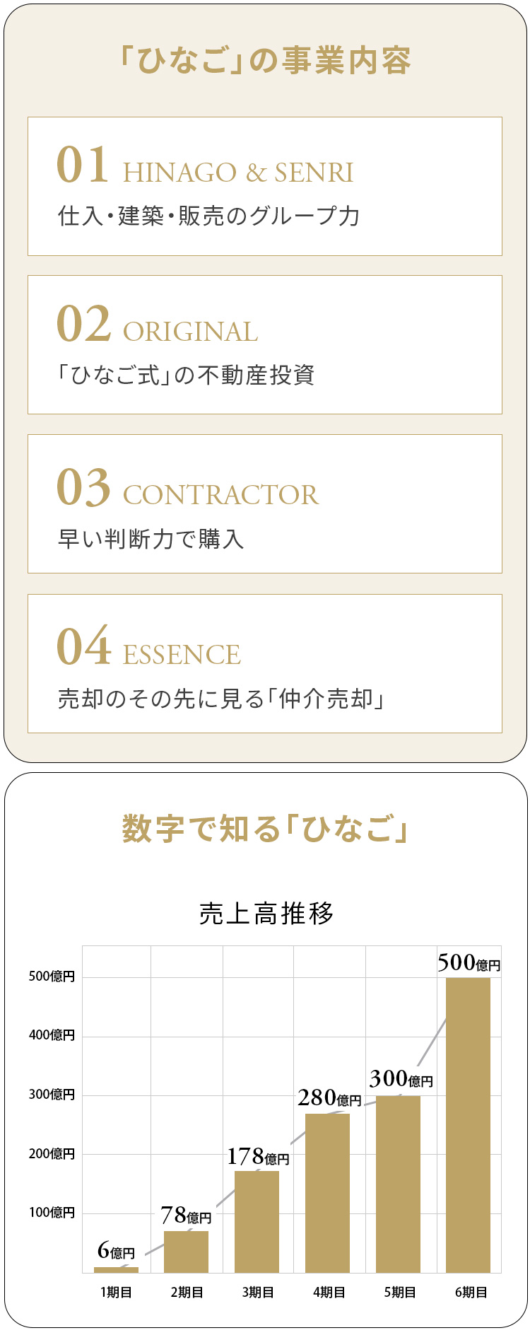 同社が掲げる理念は「共に成長、それが ひなご」。この理念に基づき、同社は事業エリアを資産価値の毀損リスクが低い「東京23区」に特化し、顧客の「目的」達成にフォーカスした独自のプランニング力と、それを具現化する高い戦略性を強みとしています。2019年の本格稼働以来、この「企画力」と「集客力」の基盤となる独自の戦略が顧客との強固な信頼関係を構築し、右肩上がりの安定した事業成長を実現しています。