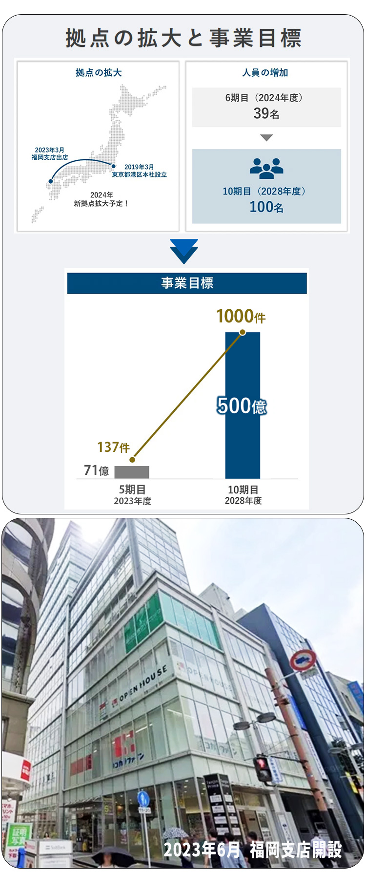 また代表 工藤氏の故郷である福岡に、2022年6月 福岡支店(福岡市天神)を開設、2025年11月には大阪市北区・PMO梅田内に3拠点目となる「大阪支店準備室」を開設しました。今後は関西エリアでの仕入・販売体制を強化することで、更なる事業拡大を目指しています。