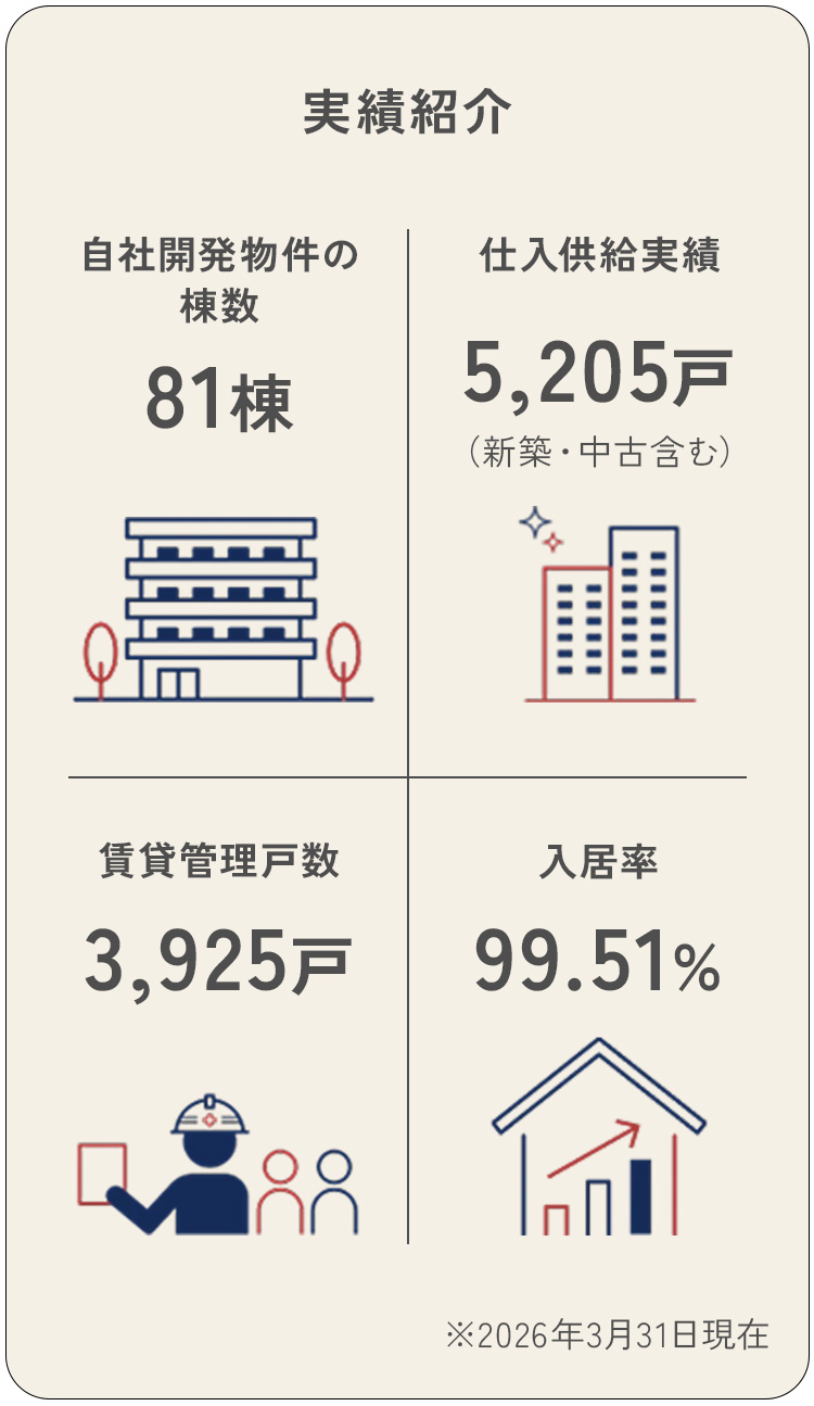 さらに、同社が持つ専門的なノウハウは、販売後の資産価値を維持する賃貸管理の領域においても確かな強みとなっています。管理戸数3,925戸に対し、入居率99.51%(2026年3月31日時点)という高い水準を維持しているのは、オーナー様の収益最大化を第一に考える「PIMの総合力」によるものです。空室リスクを最小限に抑え、安定した収益基盤を支える「稼働し続ける資産」の提供こそが、数多くのリピーター投資家を生み出す信頼の礎となっています。