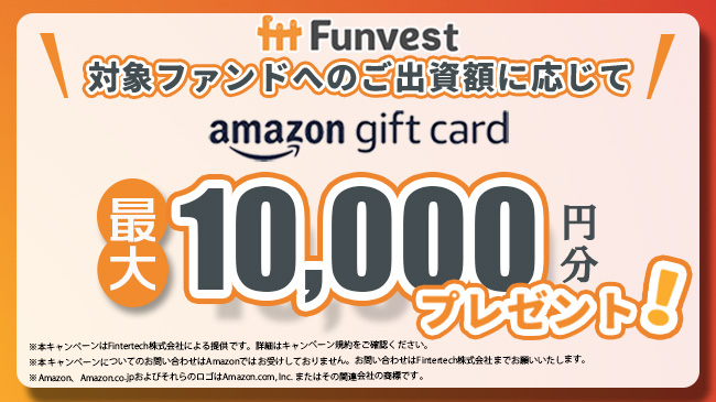これからFunvestで資産形成をはじめるお客様の投資デビューを応援するため、キャンペーン期間中の会員登録・初投資でAmazonギフト券をプレゼントするお得なキャンペーンを実施いたします!